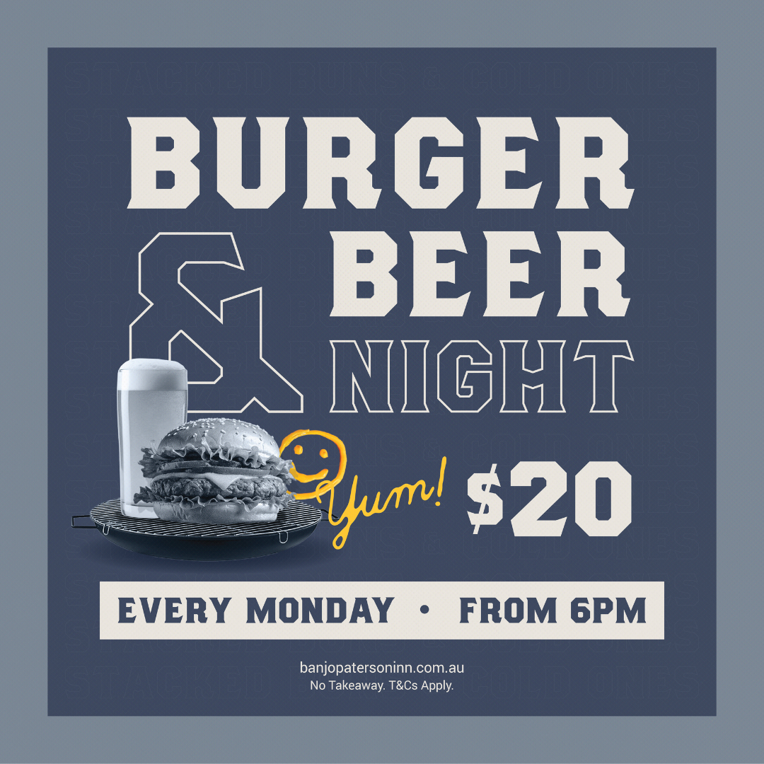 Every Monday from 6pm, grab a juicy burger, fries, and a schooner (or house wine) for just $20. It’s the best deal in town, no card needed - just good food, good beer, and good company.